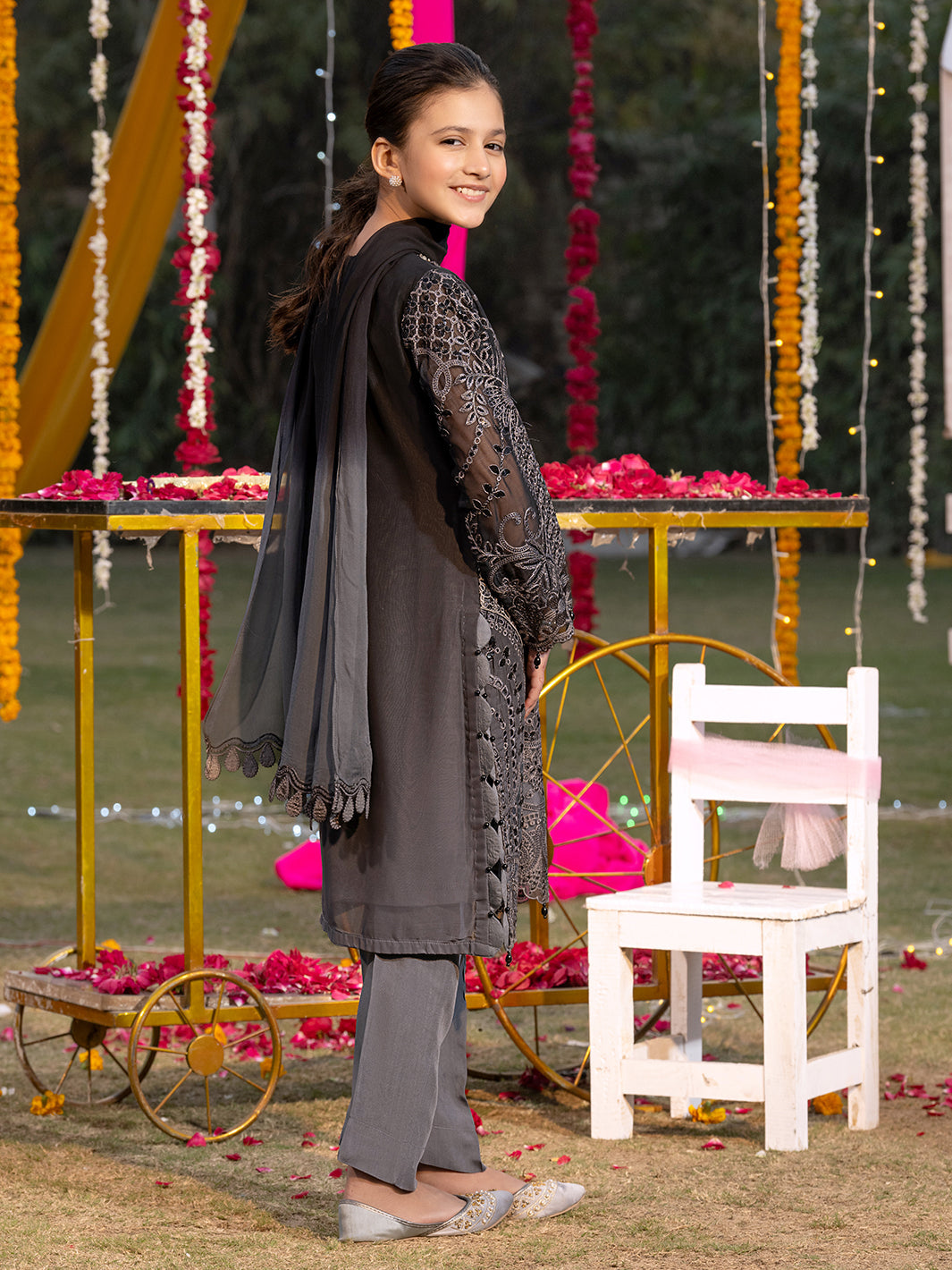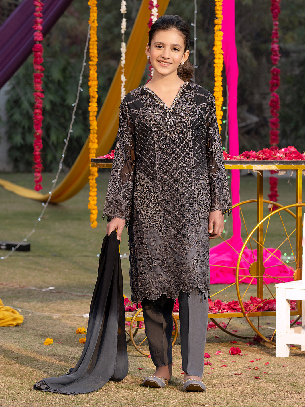 Paired with a radiant chiffon dupatta and detailed embroidery