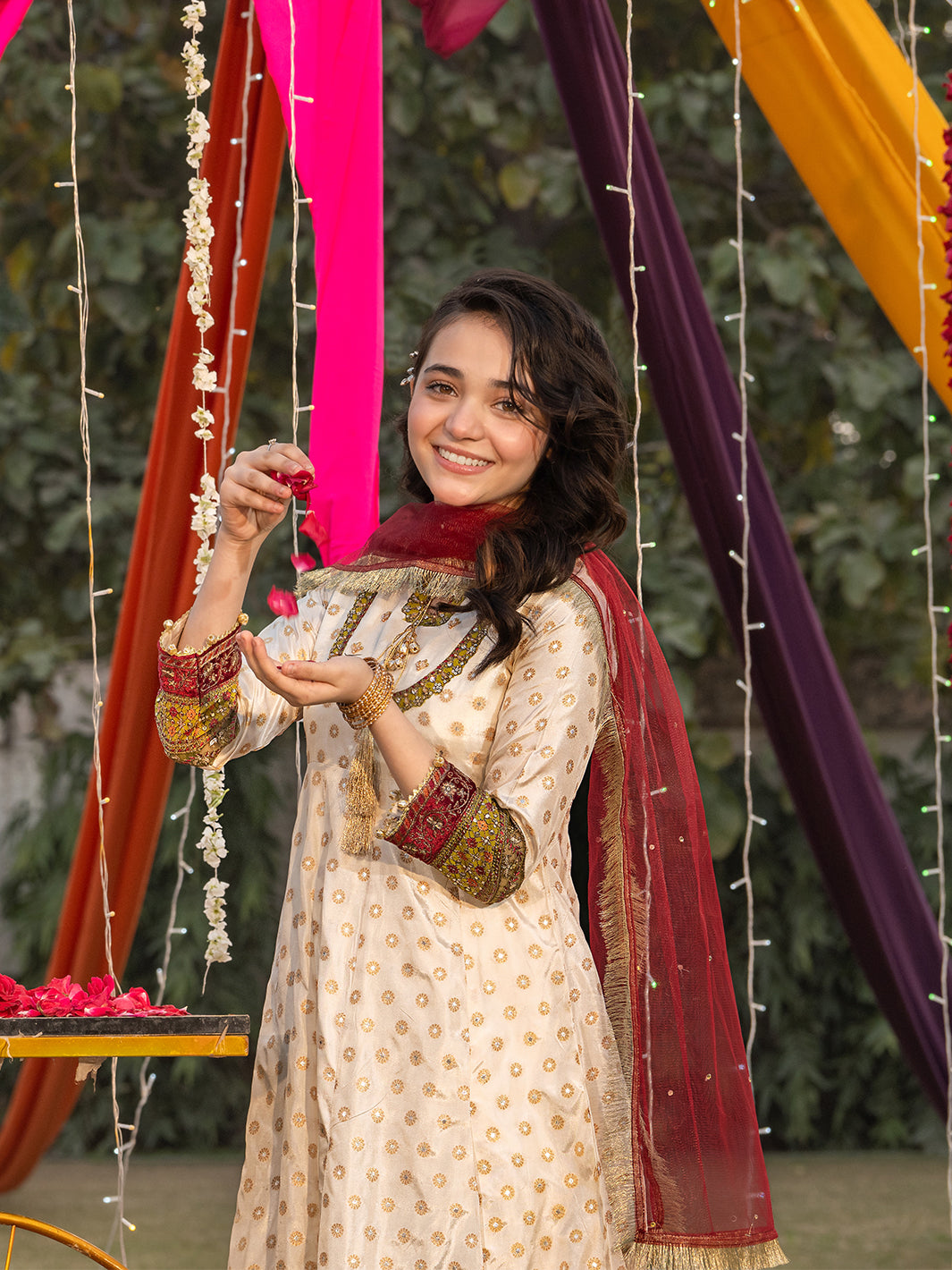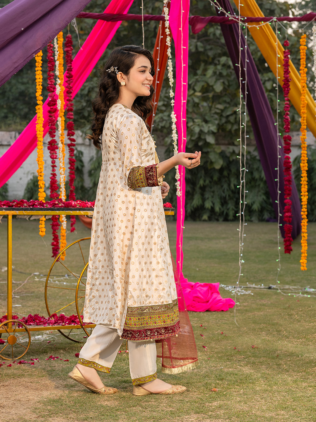 Paired with premium viscose trousers, enhanced by intricate spangle embroidery.
