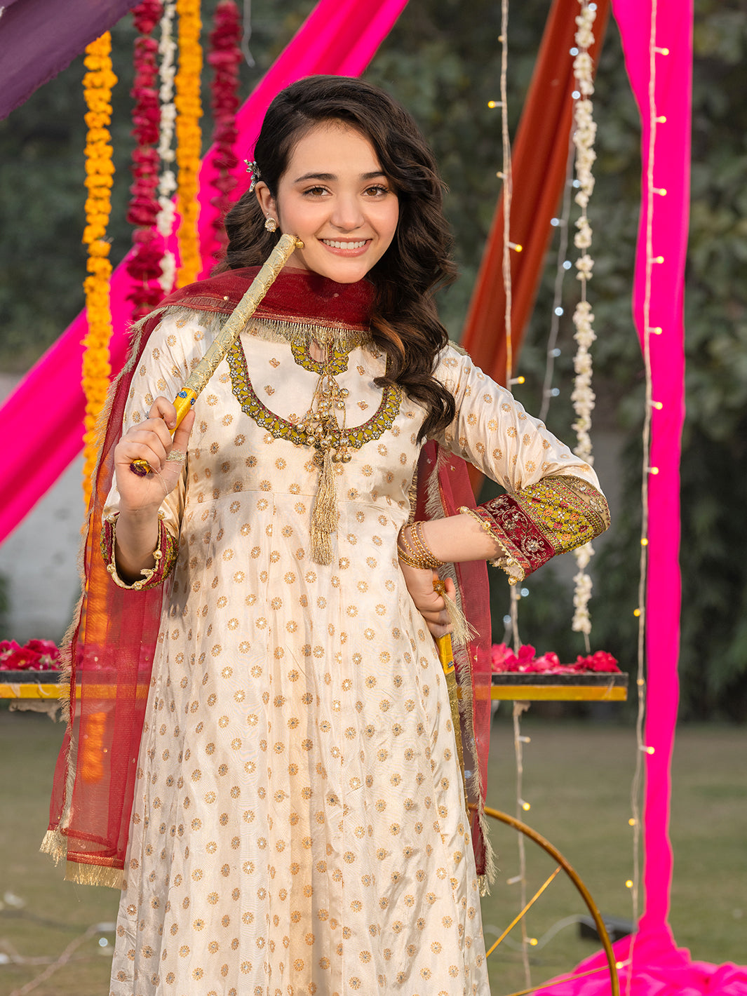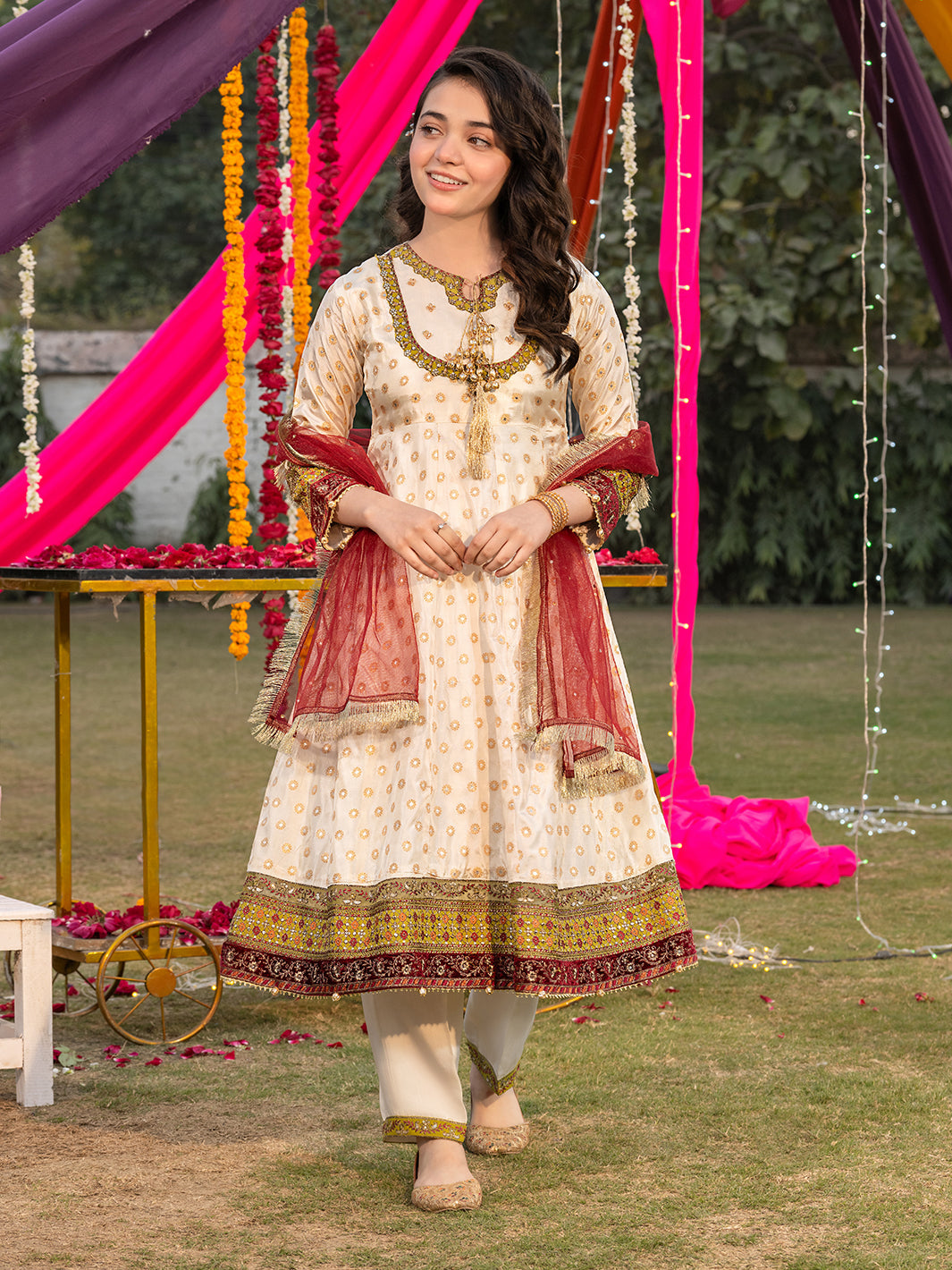 Silk lurex maxi featuring exquisite handmade adda work with sequin embroidery, adorned with paranda tassels, gotta patti, and bead embellishments