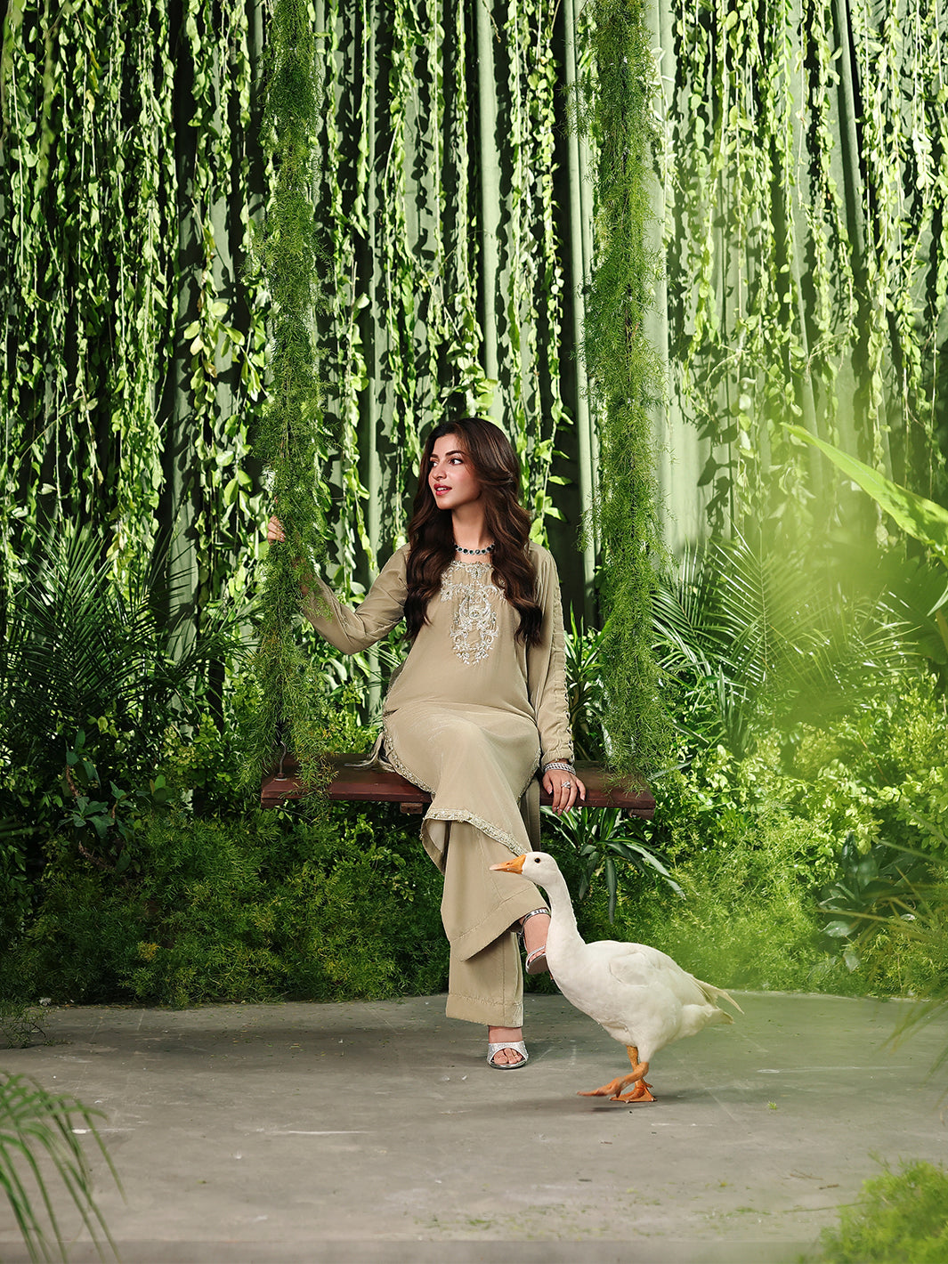 Completing the look is a matching velvet trouser