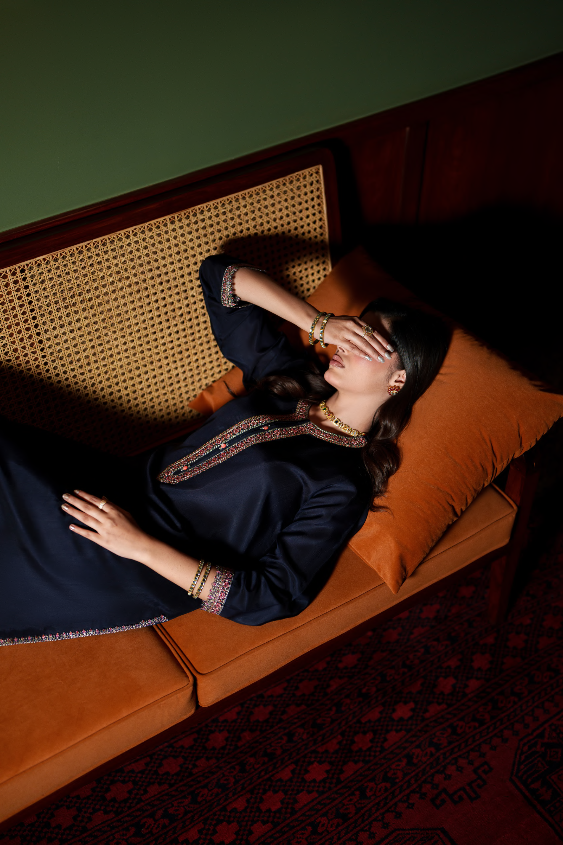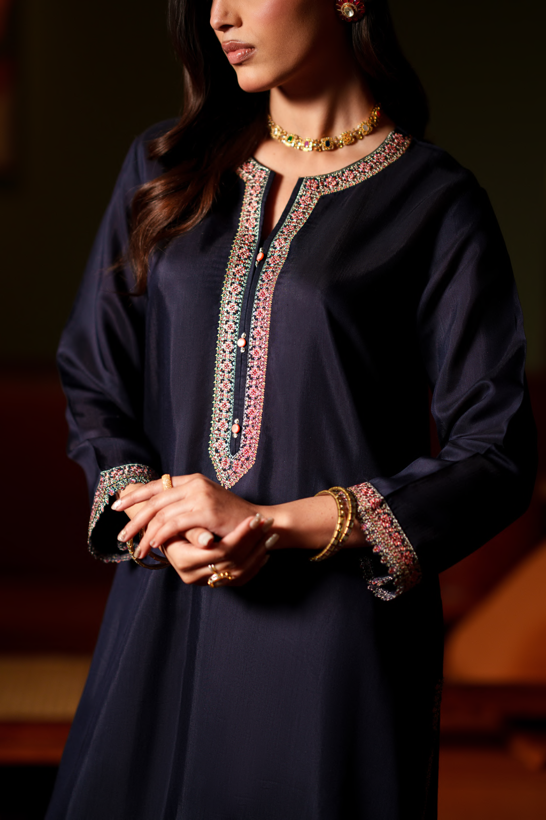 Aurelle Deep Midnight Blue – Intricate Embroidery | Subtle Festive Detailing