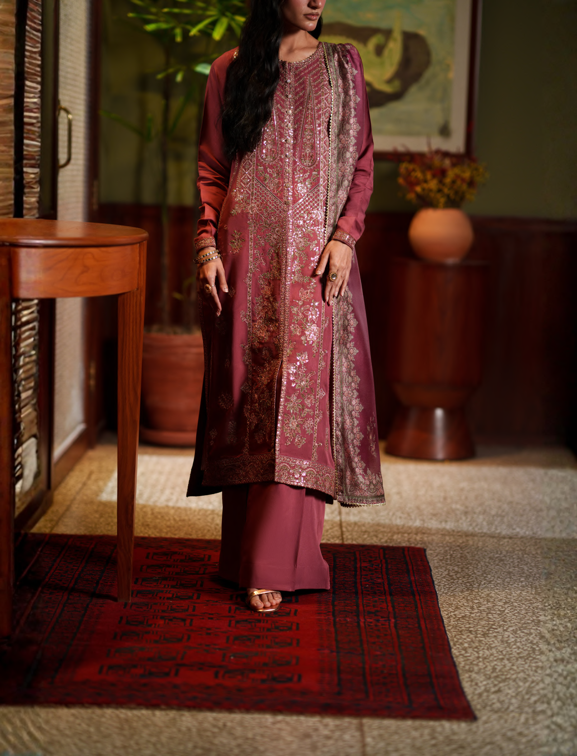 Maribel Rich Rosewood – Gold Embroidery | Patterned Dupatta
