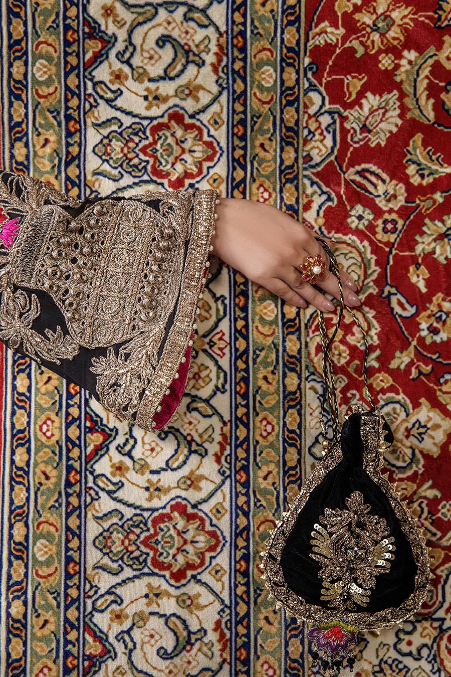 Dupatta: Silk ( two layers) ( one side red other black)