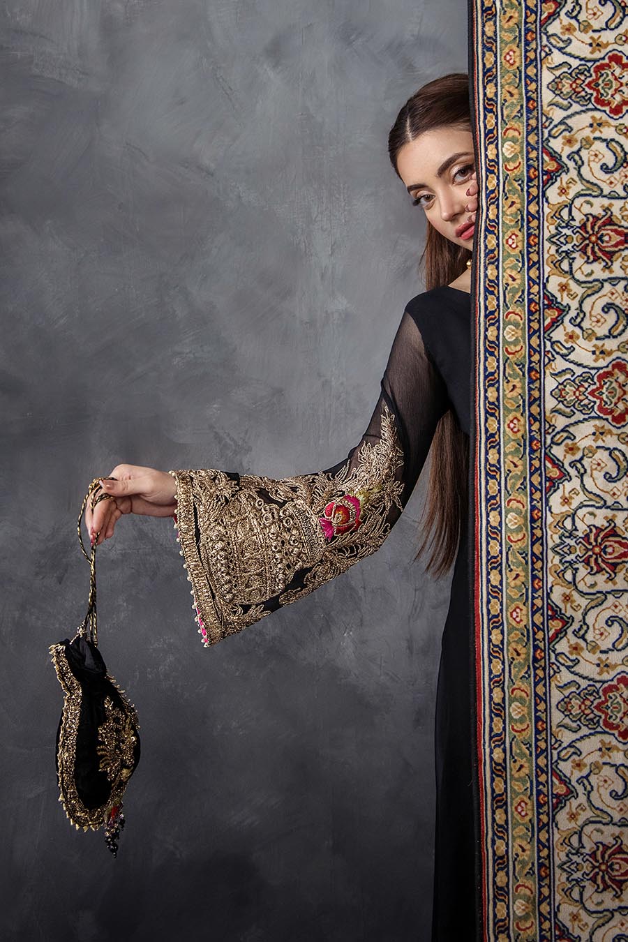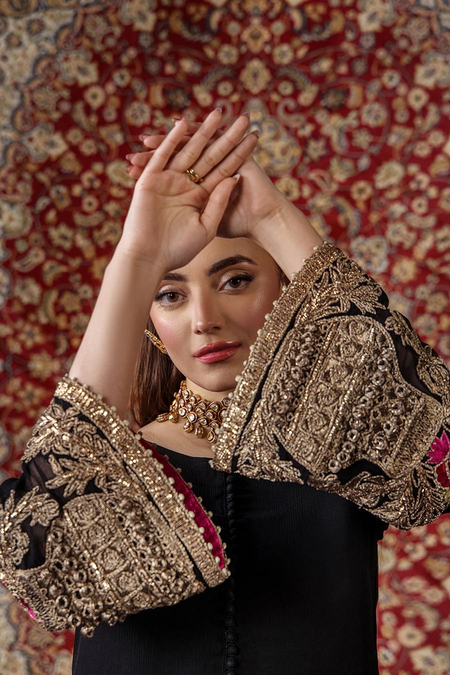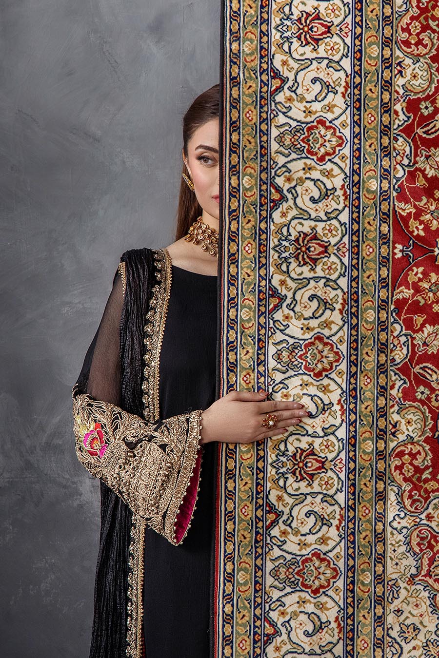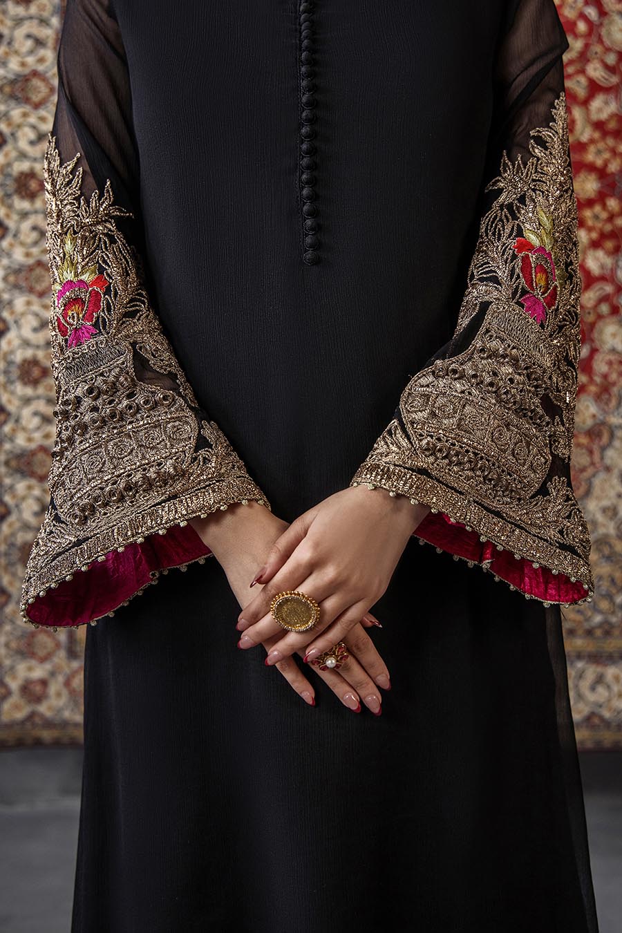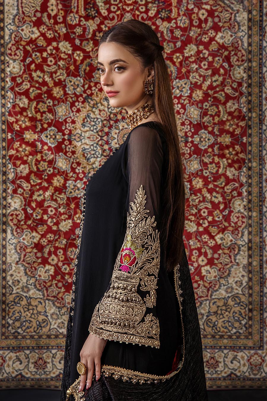 Shirt: Crinkle Chiffon Hand embroidered (kora, dabka, tilla & stones)