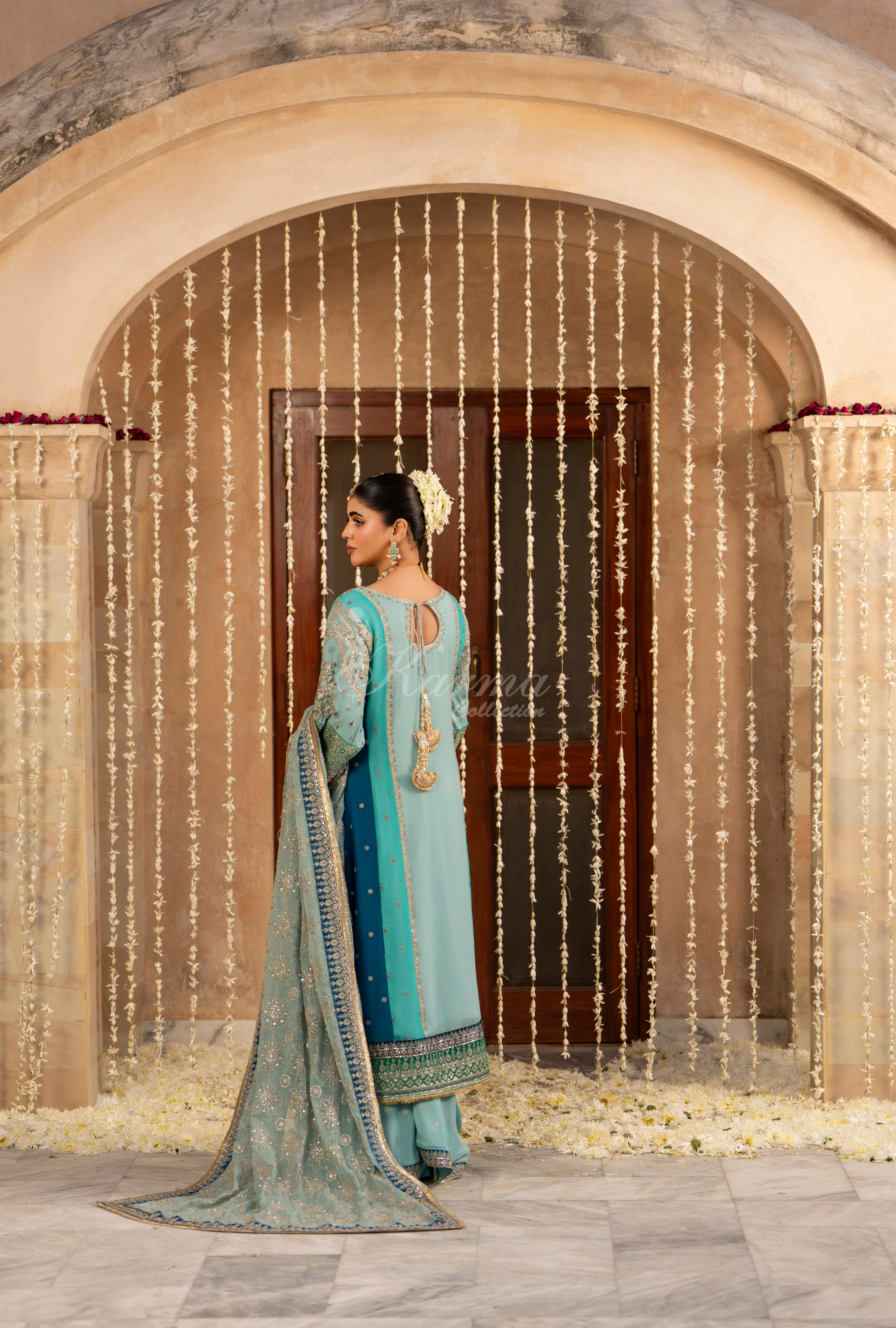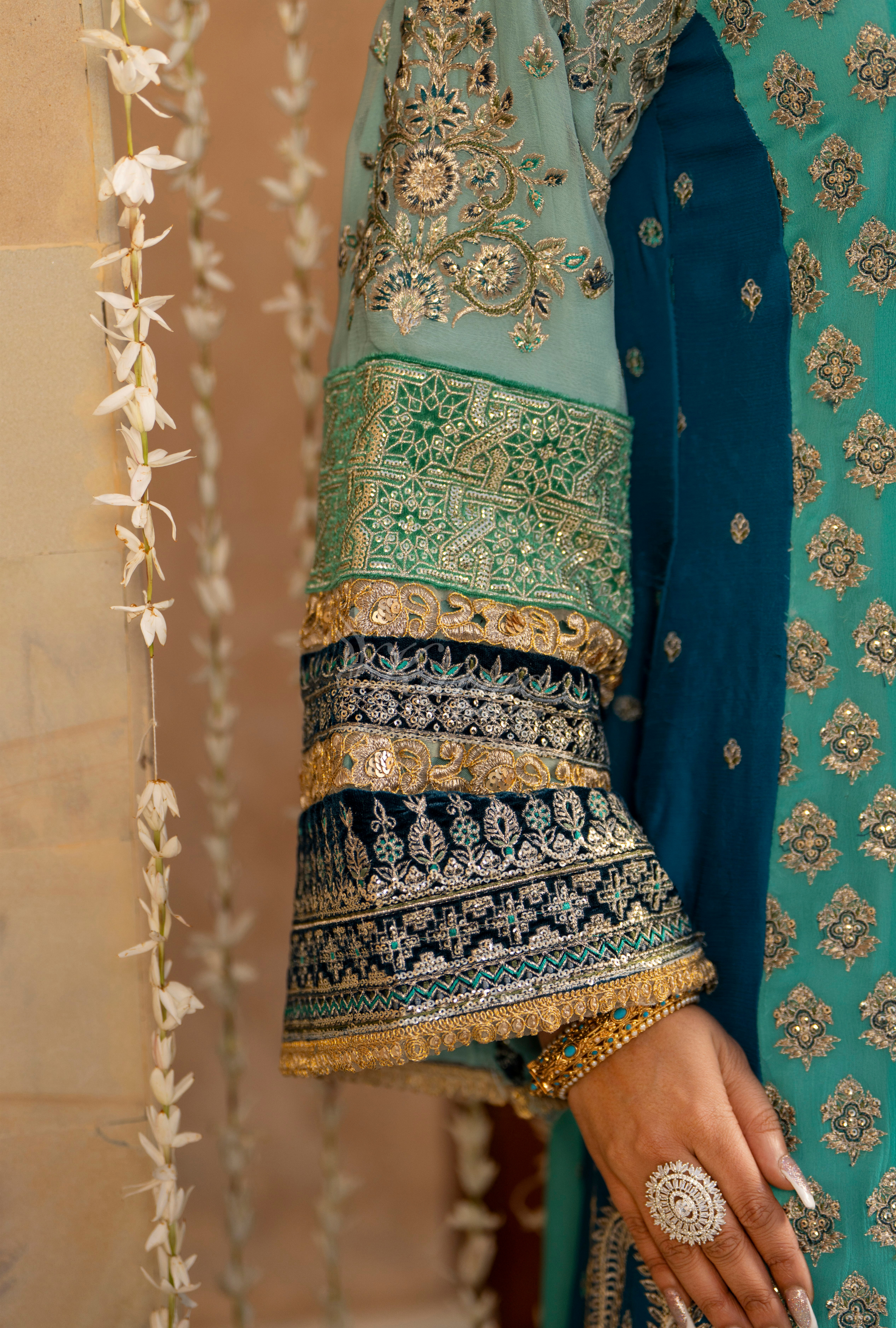 Chiffon Long Shirt with Tilla, Sequence and Panni work with Colour full Panels (Cutwork Laceon Border)