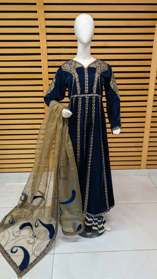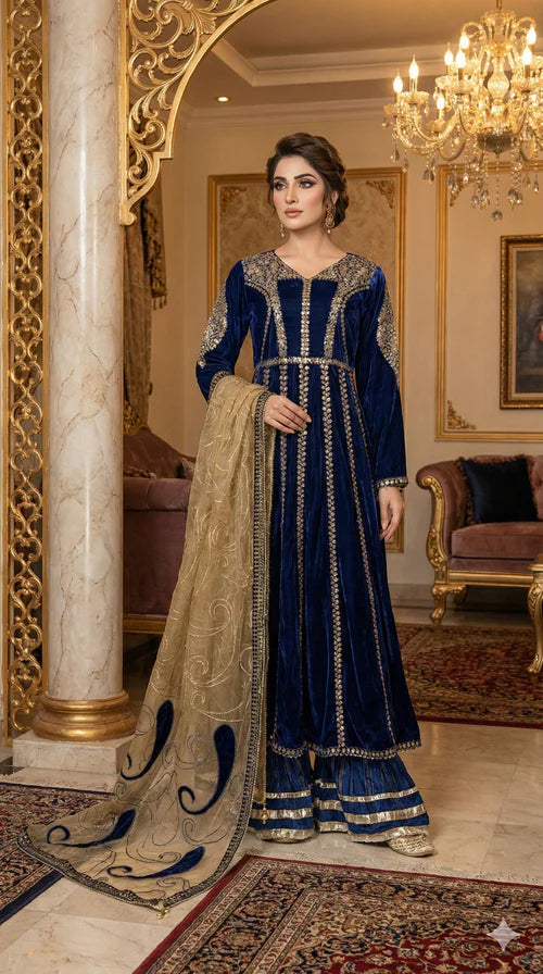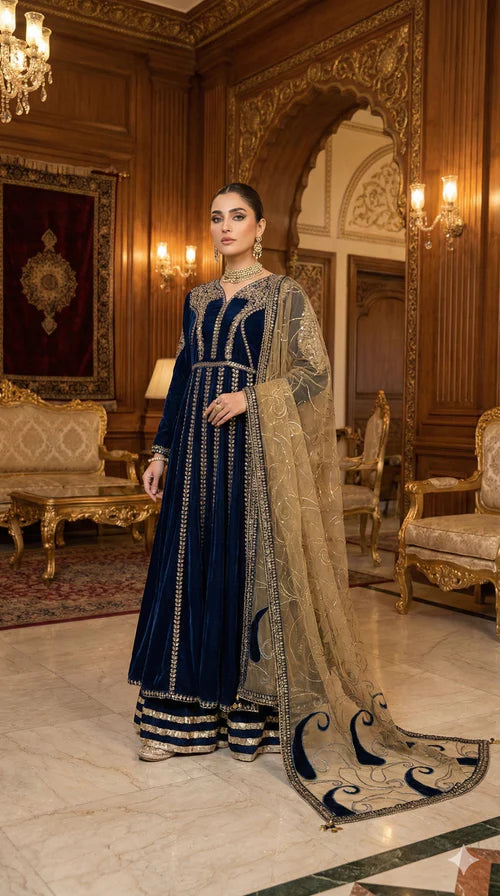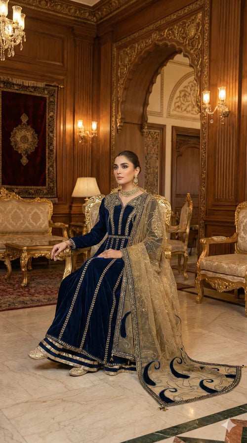 1-Premium 9000-micro velvet maxi featuring intricate 5mm sequin embroidery and lace detailing.